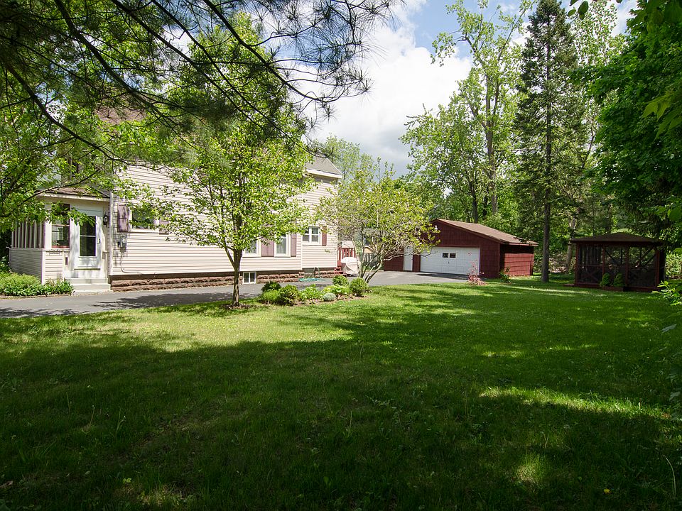 Beautiful home in a park like setting. Come home to the peaceful slightly wooded yard and listen to the river flowing nearby. The screen in patio is a fabulous place to entertain or just enjoy the tranquility. Inside there is a lovely addition with vaulted ceilings and lots of sunshine coming in. The kitchen is bright and spacious with room for an eat in area plus a formal dining room. A second living room is also off the kitchen. Upstairs the master bedroom is enormous with room for a master bath if someone decides to add one. Two other bedrooms and a bathroom are also upstairs. Come check it out before its gone!