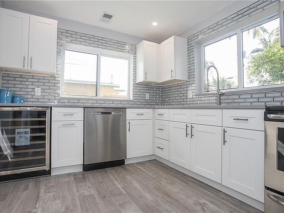 NEW NEW NEW - Truly a first class turn key renovation! Brand new kitchen featuring, quartz counters tops, custom back splash / hardware, Frigidaire appliances, wine cooler, full size stackable washer dryer, tankless hot water, NEW 2nd bath, stunning shower with custom glass, double sinks, new porcelain floors, LED recessed lighting throughout, camera security system, new plumbing drain pipes, impact glass, new landscaping with irrigation, new fenced yard freshly painted inside and out, all on a 5500 SQFT lot! Bring your fussiest buyers! Prepare to enjoy all the upgrades. Easy to show, easy to love!