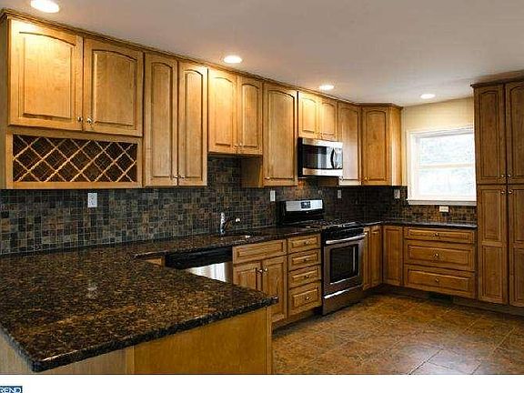 Four bedrooms and 3.5 baths with finished basement and 2 detached car garage. The original home torn down to foundation, and a new 2,340 Square Ft beautifully built-up to 1.5 story cape. Open first floor with a living room, dining room, family room with gas fireplace. Ultra-modern eat-in kitchen with granite counter tops, stainless steel sink, garbage disposal, dishwasher, built-in microwave, tile back splash, tile floor, five burner gas stove, stainless steel refrigerator and wood cabinets. On this floor also are two bedrooms, a modern full bathroom, also a third bedroom that has its own private full bath. On the second you will find a large private master suite with his and her closets, a modern four piece bathroom with a glass shower, Jacuzzi tub. Full finished basement with utility room, laundry hook-up and a two piece powder room. A detached 2 car garage and six car driveway parking, rear deck and a fenced rear yard.A must see!