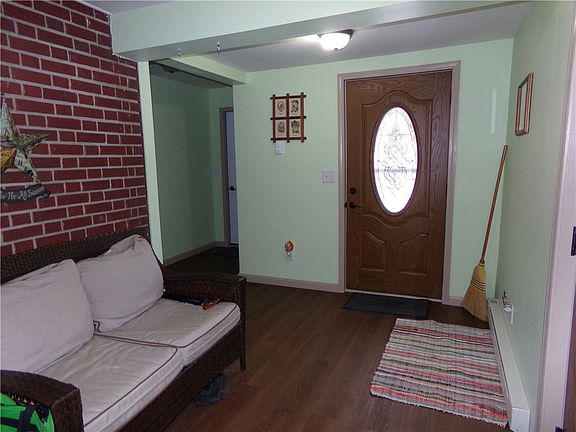 You will be pleasantly surprised at the amount of living space in this 1-1/2 story, brick home. There is approx. 3422 sq. ft. of above grade space and the lot is 1.48 acres. The living room features a fireplace with woodburner insert, hardwood under carpeting and a garden window. The Maple cabinets highlight the kitchen with adjoining dining area, featuring parquet wood flooring. There are 3 bedrooms, a bath, nice-sized laundry room with roll-in shower and several hall closets on the main floor. The second floor has 2 additional, large bedrooms and a full bath. A family room with fireplace, half bath, and storage are on the lower level, with walk-out. The home is serviced with a well, public sewer, oil and electric heat and 2 garages