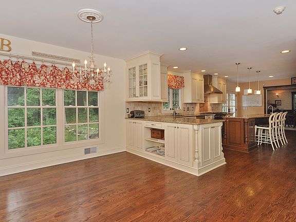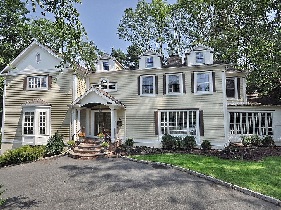 Renovated Elegant Center Hall Colonial boasting 5BR, 4.1Ba. Gourmet SS Kitchen with center island, oversized family with wood burning stove, impressive formal Dining Room with coffered ceiling. First floor guest suite with en-suite bath. Luxurious Master Suite with Closets Galore, dressing area, and balcony overlooking yard. Finished walk out basement with office, sauna, den, cubby storage, and full bath. 4 car garage and circular drive complete this high end home. You will appreciate the logical layout & high end appointments throughout. Sought after Deerfield Community, #1 Schools in NJ, Mid-town Direct train with valet parking.