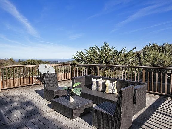 Fantastic Price Improvement!! Enjoy this comfortable retreat. It is tucked away amid the trees yet perched high enough to enjoy city lights and bay views in the distance. A reverse floor plan allows for the common living space to have breathtaking views. There are 4 bedrooms and 2 baths on the lower level, including a spacious master suite with his and hers closets and a private bath with walk-in shower. This is a rare opportunity!! NOTE There is access from Vista Verde to the home as well as from Ramona Rd.