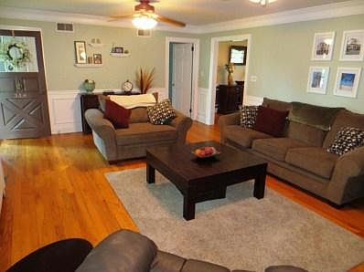 Great Cape Cod with hardwood floors, upgraded kitchen w-marble back splash, Lg living room w-fireplace & book shelves. 2nd floor owners suite & 2 1st floor bedrooms. Fenced rear yard, large corner lot.