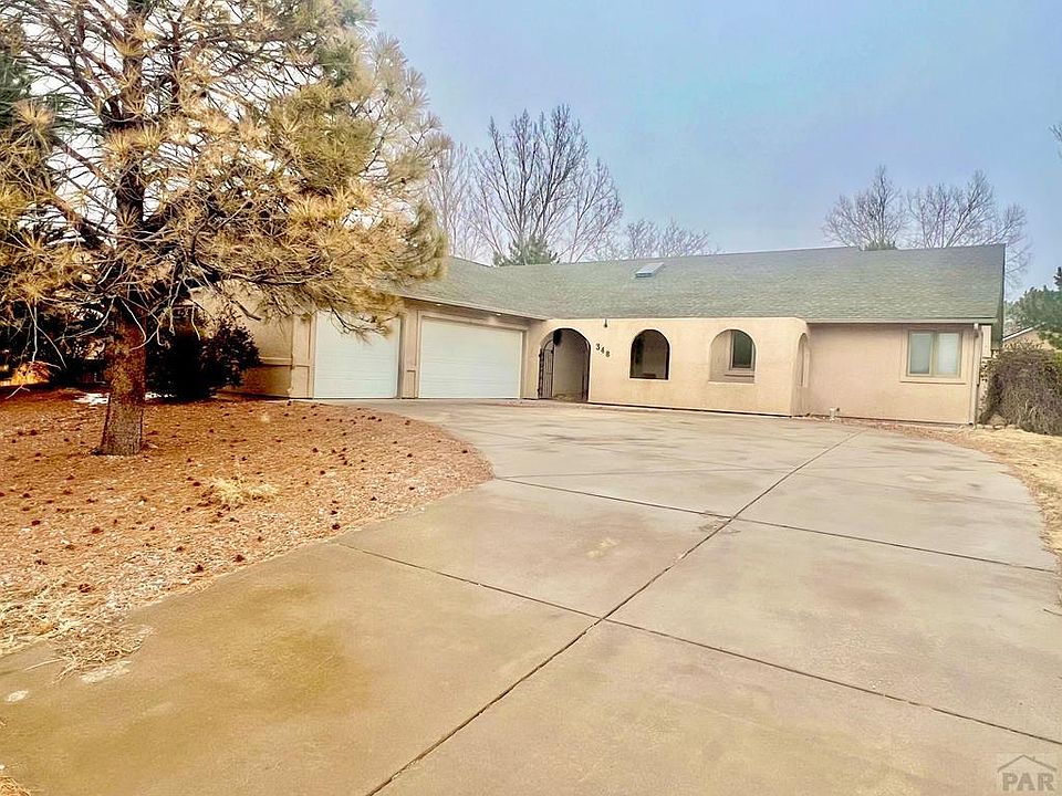 Welcome to this 3 bedroom, 3 bath home located just off of Desert Hawk Golf Course in Pueblo West. Step in your front door to your open foyer overlooking the living room and formal dining area. If you walk to your right, you will find the oversized primary suite, with a walkout to the backyard patio, as well as your own personal office. On the other side of the foyer you will find your entertainment space, with the kitchen, family room and cozy fireplace. Down the hall you have 2 more bedrooms, a bathroom, and laundry area leading you to the 3-car attached garage. One level living at its finest! The backyard is a hidden oasis with a large patio, yard and mature trees. Don't wait on this property as it will sell fast! Schedule your showing today.