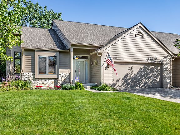Spacious, thoughtfully updated, & meticulously maintained 3-bedroom/2-bath condo in the peaceful Pebble Brook neighborhood. Pebble Brook is a designated golf cart community & adjacent to Pebble Brook Golf Course! Owners have made numerous updates! Furnace, water softener, & dryer all NEW in 2023! A/C was NEW in 2021! NEW LVP throughout main level (2020) & updated bathrooms featuring new tile, countertops, Delta faucets, & Kohler sinks (2018)! Kitchen is updated w/ all stainless steel appliances & white cabinets; kitchen windows were NEW in 2021. Great room is a stunning entertainment space w/ cathedral ceiling, gas log fireplace, & direct access to the patio. Primary bedroom & bathroom are conveniently located on the main level. Huge unfinished basement w/ shelving & oversized finished garage w/ two work areas offer ample storage & flex space! A beautifully landscaped yard complete w/ mature trees offers excellent curb appeal & a relaxing escape for summer nights on the patio.