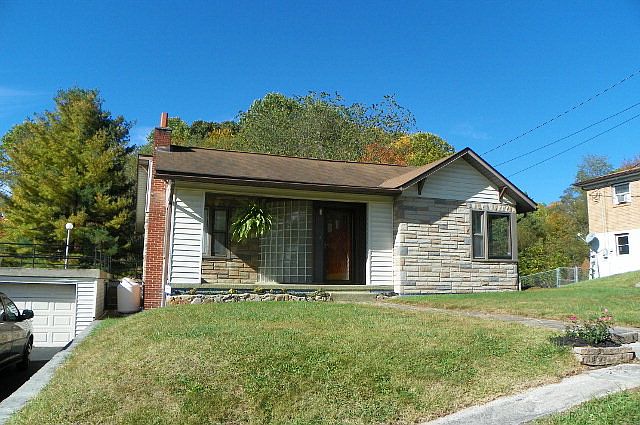 Charming cottage, clean, and ready for new family! 3rd Bedroom in basement, attic is finished with storage. Hardwood floors under carpets. Commode and shower in basement, laundry sink. Three heat sources- coal and oil furnaces, 2 gas fireplaces. All appliances remain, built-in shelves in dining area off living room. Large patio over garages with nice view, level back yard, paved double drive.