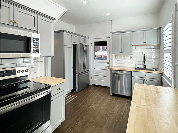 Beautifully Remodeled 1.5-Story Brick Charmer! This inviting brick home has been beautifully remodeled and is ideally located close to downtown, just minutes away from shopping, trails, events, the hospital, schools, and entertainment. Step inside from the covered front porch into a warm, welcoming living room that flows seamlessly into a charming dining room. The kitchen is truly a chef's delight, featuring updated cabinets, appliances and tons of countertop space! . Main FLoor also offers a convenient Main level laundry room, a beautiful full bathroom, & comfortable 2nd bedroom. A stairway ascends from kitchen to the second floor, where you’ll find a spacious primary bedroom with a walk-in closet and a full bath. The basement offers convenient walk-up access and features a recently added covered staircase leading outside. With its modern updates and classic charm, this home is move-in ready. Don’t miss the chance to make this home yours for the holiday season!