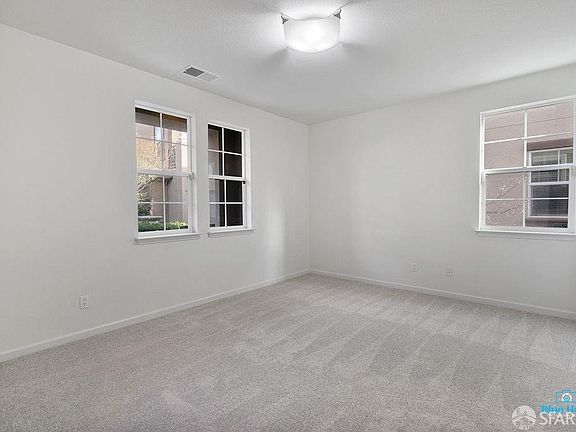 Nestled within Hayward's desirable Mt Eden neighborhood, this modern construction, tri-level residence boasts three bedrooms and four bathrooms, each bedroom offering the convenience of an ensuite bathroom for comfort and privacy. A well-appointed kitchen awaits, complete with ample cabinet storage and a convenient pantry closet. Natural light gleams in the expansive living room featuring a high ceiling, seamlessly merging with the kitchen to create a bright and airy space. Step outside onto the charming balcony, an ideal spot for savoring morning coffee or enjoying a refreshing evening breeze. For more outdoor entertainment, a nearby park offers a plethora of recreational activities, from playgrounds and picnic areas to walking paths and basketball courts. New carpet throughout the property, leased solar for the benefits of energy efficiency year-round, and an attached two car garage to eliminate parking worries! Conveniently located just minutes from shopping centers, major freeways, and public transportation, residents can easily access all the amenities and attractions Hayward has to offer.