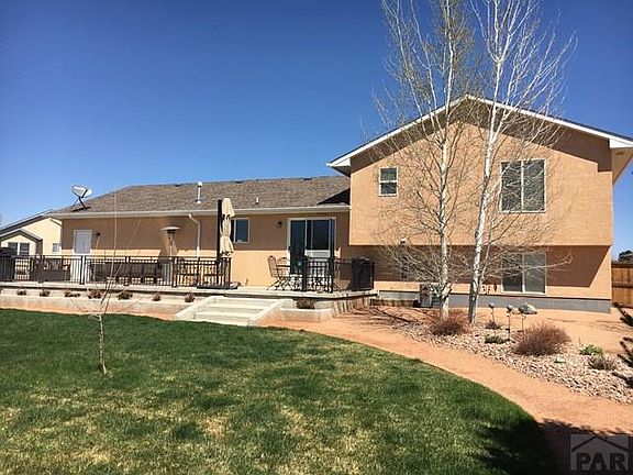 You're going to love this Pueblo West home! Great location near golf course. Nice open layout. A large living room plus family room with gas log fireplace. Tile floors, new paint and extremely well cared for throughout. Home has central air conditioning This 4 bedroom and 3 bath home has an awesome backyard with plush green grass and an expanded deck off the rear. It's the perfect spot for throwing those summer BBQ's and enjoying the Pueblo West sunsets! You will appreciate the 2 car garage and additional parking in front. TheThis is a complete package deal. Don't wait. Call today.