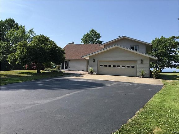 Lake Ontario waterfront contemporary on over 5 acres! 4-5 bedrooms and 4 ½ baths -2816 sq ft of living space plus approx. 1200 sq ft of finished living space in the basement - very inviting open floor plan -almost all rooms have a view of the lake- large entry foyer- large living room with wood burning fireplace, vaulted ceilings and big windows facing the lake - solid oak stairway - red oak flooring throughout the home- solid oak kitchen cabinets with updated appliances-TV/game room with solid oak wet bar and 2nd wood burning fireplace - -large master bedroom with patio doors and master bath on 1st floor- second floor features 3 bedrooms and 2 full baths along with a an office/study that could be a 5th bedroom and a huge storage room/attic - the basement level has 2 big rooms with one being set up for exercise equipment and other room has a pool table and table tennis- there is ceramic tile flooring throughout the finished basement- roof, siding, and windows all new in 2008- a new stamped concrete patio was added in 2018- the property is nicely landscaped and of course the views of Lake Ontario and those famous sunsets!