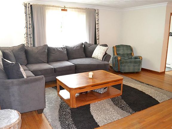 Welcome home! This large 2 bedroom RANCH is move in ready!. The kitchen is tastefully updated with new cabinets, countertops, floors and appliances. Eat-in kitchen with breakfast bar and formal dining room. Hardwood floors throughout the whole first floor. MASSIVE living room. Both bathrooms are updated with tiled flooring, new vanities and fixers. Finished basement with bar area and separate side room that would be perfect for an extra bedroom, family room, media room, office, playroom etc. New boiler and hot water tank. Updated electrical and plumbing. Back enclosed porch and new front porch. More exterior features include: large fully fenced yard, architectural roof, detached 1.5 car garage and concrete driveway. Call today!