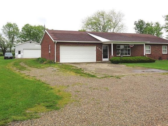 One level brick ranch on quiet country road! Three-bedroom, two bath home with lots of family space. Bedrooms have new ceiling fans, master suite with walk-in closet and private full bath. Family room has newer pellet stove, opens to huge country kitchen. Appliances stay. New Maytag washer and dryer are negotiable. 18 x 30 back deck with newer canopy staying. Attached 2 car garage with attic storage PLUS detached 2 car garage with work bench, ladders and compressor staying. Roof new in 2012, new water heater 2021, water softener 2011, well pressure gauge and switch 2021, pressure tank 2015, kitchen appliances 2018. All this sitting on 1.2 acres. Call for your private tour today, won't last long!