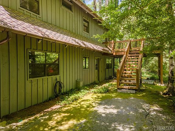 This cozy mountain cottage with shared driveway has easy ingress and egress off Whiteside Cove Road, and adjoins the Heaton Forest section of High Hampton. Mature trees and landscaping greet you as you pass a gently sloping lawn to the home. The front entry is accessed off a large half-wrap deck with plenty of room for outdoor furniture. Inside there's a soaring ceiling in the wood paneled great room and a fireplace currently outfitted with a wood stove. The kitchen, two small bedrooms and a bath finish off this level. Large master bedroom is upstairs with its own bath. The lower level has three main spaces that can be used in many different ways; game room, bunk room, home office, storage, apartment...........This property is well located for folks who wish to be on the 107 south corridor and also participate in the fun things going on in the town of Cashiers.