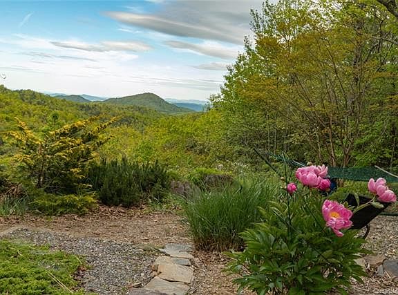 Escape the ordinary! Find yourself in a botanical delight of mature gardens, year round Mtn views & hiking paths to bold creek below. Hidden peaceful oasis consisting of home, guest cottage & 3 add parcels for 28.4 acres- easily accessible to Black Mtn & Asheville. Both homes w/solar electric & solar H2O. Main home has battery bank for stand alone if you desire. Fall in love w/South facing spacious main home featuring open flr plan, vaulted ceilings, custom stone fireplace, cherry cabinets, oak flrs, radiant floor heat, masters on both levels, family room, office, steam shower, jacuzzi & workshop. Host family & guests in the charming 2 BR 1.5 BA cottage or use as vacation rental. Cottage includes: open flr plan w/wood ceilings, wood flrs, upper deck w/ Mtn views & lower screened-in porch, basement workshop space. Lot 2 is cleared w/septic installed, covered deck & trail to creek. Wait there's more! Wood-fired oven, pavilion, oversized 2 car carport, irrigation system & dog park!