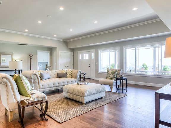 Expansive one level living on 4.52 acres. Amazingly gorgeous renovation! Open concept great room is spectacular with trey ceilings, hardwood floors, wrap around breakfast bar and new gourmet kitchen. Main hall has 3 beds plus versatile 4th bedroom in East wing; view of St Helens, Adams, Hood & Jefferson. Massive pantry and master closet are truly impressive. Acreage includes a sport court with B-ball & tennis, tree house.