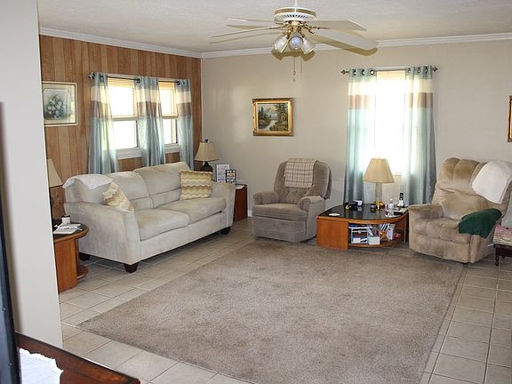 Beauty, warmth, and value! This 3 BR, 1.5 Bath is clean, spacious, and priced to sell. Built-in desk/shelving and lots of natural light. Sprawling yard views abound from both the back patio and the front porch swing. Plenty of storage space in large utility room or detached 2 car garage, which is already equipped with electricity. Enjoy the comforts of country living only 5 miles from town! Acreage is approximate, to be cut out of larger tract.