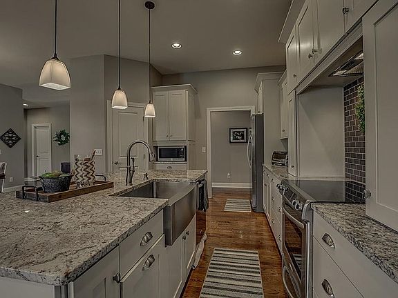 Come Fall In Love with this custom ranch home that sits on almost 6 private acres! It's serene and relaxing but still convenient to shopping, interstate & restaurants. Features: approx. 4,100 sq.ft. of living space * beautiful wood flrs * gourmet kitchen * living room w/stacked stone gas fireplace * 3 bdrms * office * 1st flr laundry * spacious master suite, spa-like bath * finished LL w/large family room, w/10' ceiling, wet bar, exercise area * 2 car ovrszed attached garage * PLUS 2-car oversized detached garage for your toys * heated in-ground salt water pool (fiberglass) *geothermal HVAC.