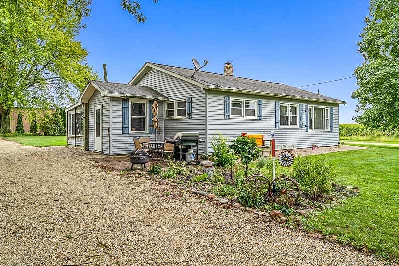 If calm & quiet living is what you are looking for, this is it! Enjoy the mature trees on close to an acre of land. Perennials grace the front of the home. Enclosed 3 seasons porch. This delightful 2 bedroom ranch is set up with an open concept kitchen, dining area & living room. Breakfast bar along w/abundance of cupboard & counter space. Cupboards have pullouts. New flooring throughout home 2019. Basement has storage shelving & sink near washer & dryer area. Huge 30X50 outbuilding. Newer septic system installed 5 yrs ago, pumped 2 yrs ago. Roof is approx 7 yrs old. Bike trails, Kinnikinnick Creek Nature Preserve & Atwood Park are nearby!