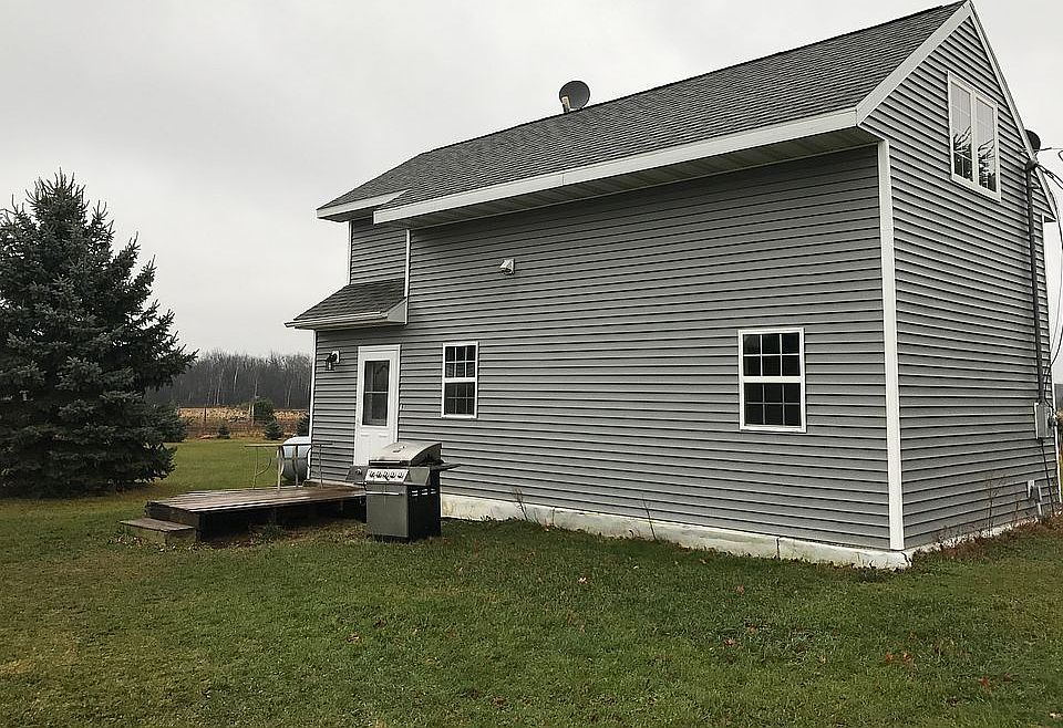 Beautiful 2.5 acre backyard with a lot of wildlife with room to add on. Energy efficient home! Home has one bedroom and one bonus room. Home has a newer roof, new hardwood floors and carpet in 2012, new windows and siding in 2015, fresh paint, 2nd floor laundry, crawl space, mound, and well. Move in ready! Only a 5 minute drive to Haines Beach. Close to great local fishing and easy access to snowmobile trails. Drive your ATV or UTV to ice legally. There is a 36 x 24 three car detached garage with a propane furnace and is fully insulated. There is also an 8 x 10 storage shed and a 12 x 18 dog kennel with run on a 24 x 18 slab, which could also be used for additional storage.
