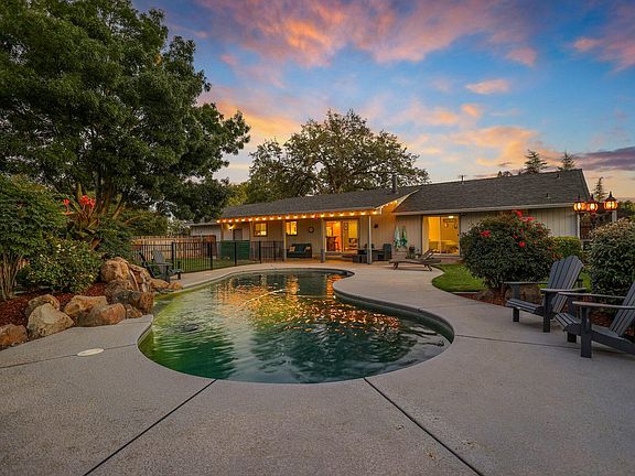 Welcome HOME! This 3-bed, 2.5-bath home sits on a spacious corner lot & features a stunning backyard oasis complete w/ an inground SALTWATER POOL, tranquil FOUNTAIN, & lush landscaping. Inside, the home boasts numerous upgrades, including new carpet, LVP flooring, trim, baseboards, fresh interior paint, updated hardware, countertops, sinks, plumbing, & HVAC ducting. New custom closet kit in suite. The open layout includes vaulted ceilings, a cozy wood-burning stove, & a large kitchen w ample storage & an adjoining dining area, perfect for entertaining. Outdoor space is ideal for relaxation & recreation, featuring a det covered carport, gated RV parking, & plenty of room to enjoy peaceful surroundings.