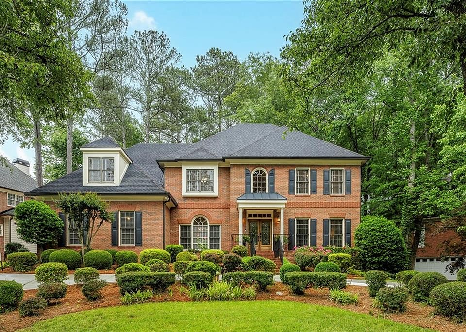 Exceptional Georgian style East Cobb home in a swim/tennis community offers a perfect blend of timeless elegance and comfort. Enter through the stately front doors the two-story welcoming foyer has an effortless open flow for easy living and gatherings. Hardwood floors throughout the main level including hardwood front and back stairs with enhanced wrought iron stair railings. The large open dining room has a butler’s pantry perfect for entertaining. The home office is nicely positioned on the other side of the foyer. The two-story great room has soft natural light, cozy gas fireplace and unique inlay wood floor design. Continue to the breakfast room and remodeled spacious kitchen with an island/breakfast bar, quartzite countertops, Bosch stainless appliances, 2 sinks for multiple chefs, and wine cooler all overlooking the gorgeous serene backyard. Off the kitchen is a large laundry room with cabinetry as you head to the spotless garage. Also offered on the main level, is a lovely guest bedroom with a private bath. The primary bedroom is upstairs with double walk-in closets, and remodeled bath with expansive double quartz vanities, jetted tub, gorgeous frameless glass and tiled shower. 3 generous secondary bedrooms, 2 bedrooms share an updated jack and jill bath and 1 has a private ensuite. The terrace level offers a large living area with a wet bar, a full bath, and several versatile flex rooms for extended stay guests/exercise room/office with ample storage/workshop plus street level side exterior entry. Driveway was recently replaced and has a circular drive for guest. Top rated school district, ideally located near sought after Walton High School in the heart of East Cobb with every convenience. Easy access to Roswell, Marietta Square, Peach Pass, I75, GA400 and I285