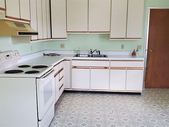 - Kitchen Cabinets/Counters: Formica Counter, White Cabinets