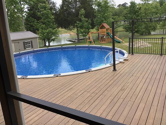 Beautiful Lakefront home sitting on 2.13 level acres in a great location with main channel view and boat dock with lift 3 bedroom 3 bath home built in 2014. Open concept with stone fireplace 12x80 screened back porch above ground pool with heater Rv carport Underground utilities and outdoor fire pit