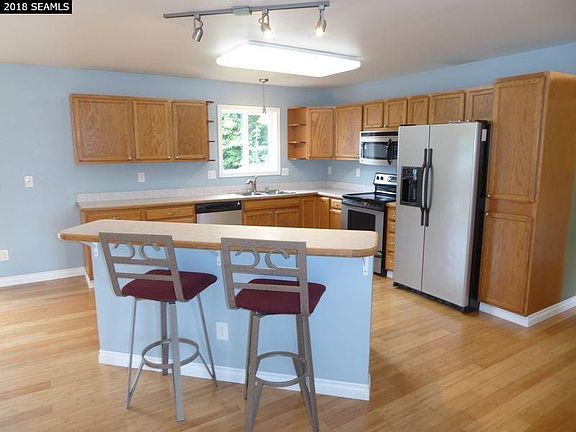 Impressive split level valley home built in 1995 which includes 3 bedrooms, 2 bathrooms, 2004 square feet of living space, 13,000 square foot lot and NEW roof. The upper level is open and inviting which combines carpeted living room, hard surface dining room, kitchen with bar and accent lighting. An exterior deck off the dining area faces a view of Thunder Mountain. Kitchen includes Oak cabinets and stainless steel appliances. The bedrooms are generous in size and include roomy walk-in closets. Travel to the first level of the home to find a third bedroom adjacent a family room, separate laundry room and full bath with double vanities. Lawns surrounding the home are enclosed by wood fence and trees line the interior creating a private grassy playground. The back patio door enters the spacious 2 car garage with shelving. Additional features include storage shed on the property, vinyl windows, paddle fan and washer and dryer hook ups.