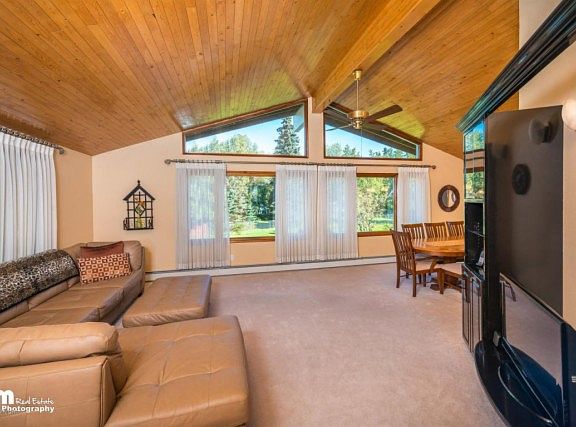 OPEN HOUSE 9/24 (2-4PM) Inviting 4 bedroom home in beautiful West Anchorage neighborhood! Gorgeous tongue and groove vaulted ceilings and lots of large windows create an open and sunny living space with tons of light. Spacious kitchen has granite countertops, hardwood floors, and custom cabinets with plenty of storage space. Bonus second living room downstairs (see more info)
