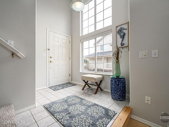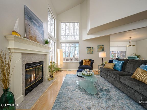 Inviting, bright and sunny well maintained town-home with natural light from the two story wall of windows. Single family style living without the exterior maintenance allows you to get out and enjoy Alaska. Spacious main floor living with open kitchen, dining, living and powder bath floor-plan. Ceramic and tile and laminate flooring throughout the main level, gas fireplace, and back patio access.