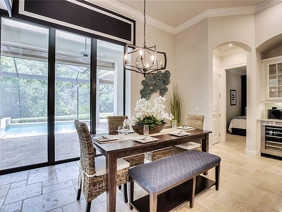 This former Royal Corinthian Homes model home is one of the best buys in Southwest Florida! Offered at $850,000 Turnkey Furnished and professionally decorated, this exquisite home has never been lived in and features incredible upgrades such as travertine floors, Jenn-Air appliances, granite and quartz counters, crown molding, outdoor kitchen, outdoor fireplace, custom pool and spa with LED lighting, and much more! The home is currently leased back to Royal Corinthian Homes through the end of November 2019. Purchasers of this home can reap the benefits of monthly lease payments through November, at which time they can choose to occupy the house or lease the house back to Royal Corinthian for an additional rental period.