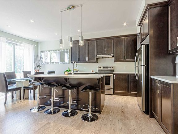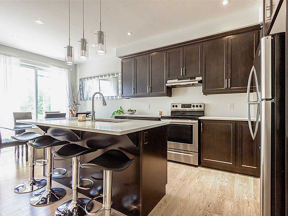 Freehold Mattamy Built New Luxury Townhouse In The Sought-After Preserve. Fully Upgraded W/9 Ft Smooth Ceiling, Hardwood Floors On Main Floor And Kitchen Area, Executive Kitchen Cabinets Poppy Seed, Quartz Caesarstone White & Extra-Large Island, 5.5" Baseboards, Gas Fireplace W/White Mantel & Framed For Tv. Railings Oak Pickets & Staircase Matching Floors, All Led Pot Lights. 3 Large Bedrooms And Ensuite W/Frameless Glass Shower & Interior Light, Laundry W/D On 2nd Floor. Approx 1500 Sq Ft Plus Bmt Extra Large Window & 3 Piece Rough-In. Public/Private Schools, Shopping Plazas, Oakville Hospital & School Bus Service, Public Transportation. Easy Access To 403/407 & Qew.