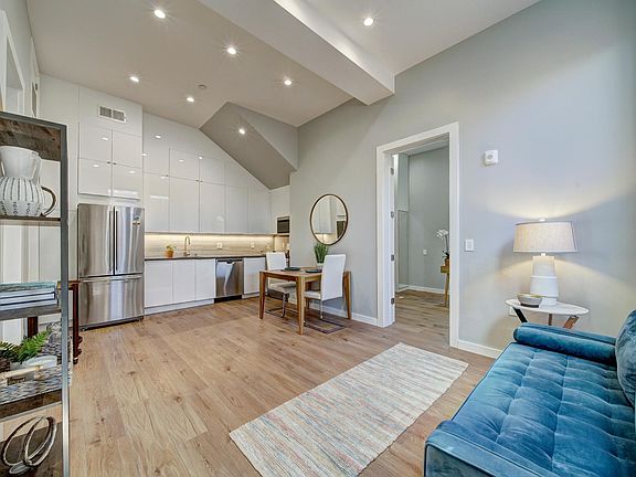 This modern ground-floor home features soaring 12-foot ceilings, a sleek full kitchen with modern appliances, and a spacious open layout that feels bright and inviting. Floor-to-ceiling storage, keyless entry, nest heating, and an in-unit washer and dryer add ease to everyday living. Enjoy a shared backyard garden a tranquil setting to relax, read, or unwind in the sunshine.