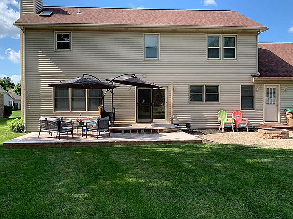 It has approx. 2500 sq ft excluding the approx 1500 sq ft in the 75% finished basement. 5 BR 3.5 Baths, Living Rm, Formal Dining Rm, Great Rm, Beautiful refreshed Kitchen with large granite breakfast bar, all appliances and built in. Main level bedroom with its own private bathroom with 4 BR's on the upper level. Large Master BR has walk in closet, bathroom with tub and separate shower. Fresh updates to flooring, showers, vanity, and finishes in bathrooms. Dual Furnace new 2008, water heater and water softener were new in 2021, new roof and 2nd story windows in 2011, as well as all new laminate flooring, new carpeting in FR and basement. All new light fixtures throughout. Beautiful, large, landscaped lot.