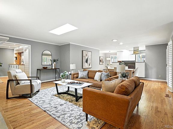 Welcome home to this beautifully updated ranch-style townhome in a prime Denver location! Rarely available, this spacious residence in Kent Village offers true main-floor living with thoughtful upgrades throughout. Step inside to gleaming hardwood floors, an open floor plan, skylights, and custom shutters. The remodeled kitchen features new cabinets, quartz counters, modern fixtures, stainless appliances, a walk-in pantry and breakfast bar. The main level includes a cozy living area with a gas fireplace and a versatile family room that flows to a private patio with a hot tub. The primary suite impresses with a customized walk-in closet, a beautifully updated bath and direct access to the private patio. A second main floor bedroom and bath showcase new tile and a large soaking tub. Downstairs, the finished basement adds even more living space with a third bedroom, full bath, large recreation area, and abundant storage. Enjoy beautifully maintained landscaping and a spacious covered front patio ideal for both relaxing and entertaining. Kent Village combines suburban tranquility with urban convenience, offering tree-lined streets, well-kept homes, and a welcoming community. Residents enjoy resort-style amenities, including a newly renovated clubhouse, pool, and workout room, plus you'll have easy access to Cherry Creek, parks, tennis courts, shopping, dining, and everyday conveniences all within the Cherry Creek School District.