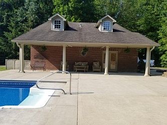 And a pool house with separate living quarters. Room to roam, inside and out. Situated on a private five plus acre, gently rolling wooded lot with open and private spaces and trails. Here are some of the many features. The main house offers quality amenities through out, stainless applianced kitchen with granite counter tops, four bedrooms, main level master bedroom with walk in multi head tile shower and double vanity in en suite, open great room, breakfast/bistro nook with natural lighting, 3 full and 2 half baths in a open floor plan with lots of natural lighting. Finished basement with media room for movie night and game day. The game room with wet bar is another great gathering space. Perfect location, conveniently located just 20 minutes from Indianapolis International Airport, 35 minutes from downtown Indianapolis and 30 minutes to Bloomington. Inground swimming pool with automatic cover. Extended living space, the pool house has a large covered front porch, includes a separate living quarters with lounge, applianced kitchen, living room, bedroom, full bath, laundry and attached garage and a fire pit off the side patio. Lots of storage spaces, including basement storage space with overhead door that opens to the backyard. Private, open patios for relaxing and cooking. This may be the one you've been waiting on.