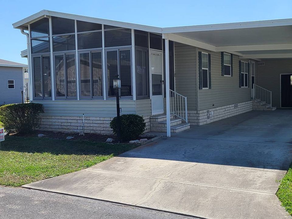 REDUCED PRICED MOVE FAST!/55+/2004 HOMES OF MERIT/3BD2BA/1344SQ + ADDITIONAL 120SQ ENCLOSED NORTH FACING LANAI/NEW METAL ROOF/CURRENT OWNER LOT FEE IS $421.00 INCLUDES THE LAWN CARE AND THE PARKS MANY AMENITIES This is an immediate occupancy three bedroom fully furnished gem located in the newer section of Crystal Lake. This home has a new all metal roof, double size storage shed with overhead storage, ceramic tile in the wet areas and the front north facing enclosed lanai, inside laundry, large open living room, formal dining area, very large galley kitchen with breakfast area and tons of storage cabinets full of what you need. The master en-suite offers a large garden tub and a walk-in shower kit with molded seating and a large walk-in closet. Across the living room is the main bath and the other two bedrooms located across the hall from each other, both extra bedrooms are large enough for that queen bedroom set. This home is fully furnished with extremely nice Florida style high end furniture to include a sleeper sofa in the living room for that overflow wintertime guests. This home offers an extra long drive enough to park three cars with two of them under carport, oversized lot, sprinkler system, pest control. Hurry on this model home, compare to new at 1/2 the price for this very well kept three bedroom home. This home is located in the Crystal Lake community offering a ton of senior activities, pool, hot tub, shuffleboard, and Crystal Lake with piers to access. This home wont last long as it is that nice and ready to go, act fast to secure your showing today!