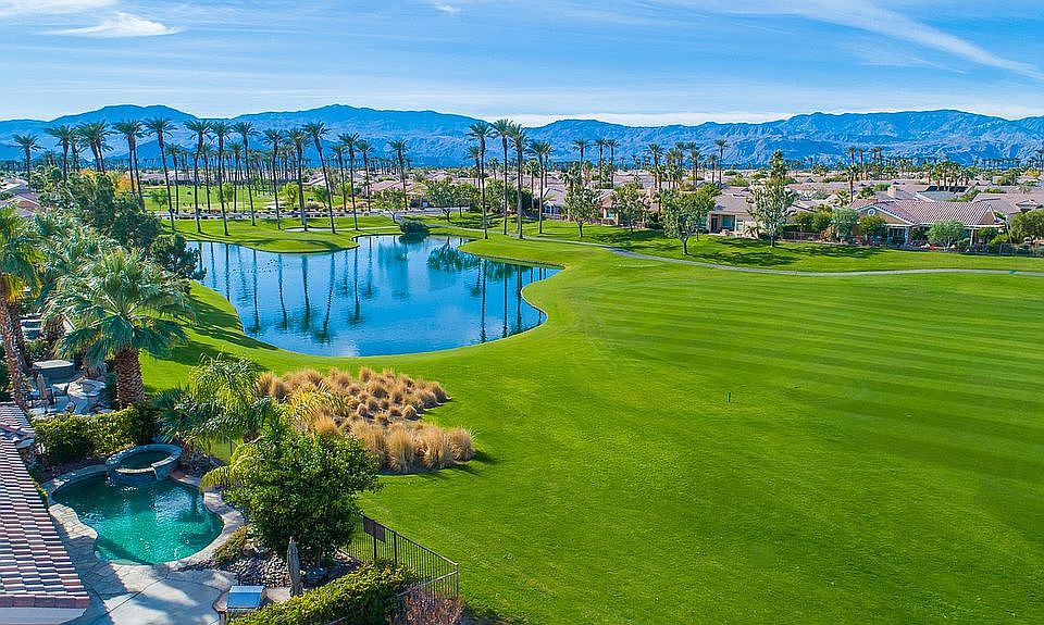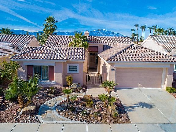 Long-term lease only, min. 12 months! STUNNING Sun City Palm Desert (55+) pool home on golf course with gorgeous mountain views! This Morocco model with lovely detached casita is ready for your guests. 3 bed/bath, den, lots of upgrades throughout. Gated front courtyard w/ waterfall and seating area. Patio is extended with pebble-tech pool and spa. Garage is extended with room for two cars and golf cart. Rental includes gardener, pool maintenance, HOA which covers premium cable, internet, and access to three clubhouses w/ fitness centers and pools. Tennis, pickle ball, bocce ball, billiards room, and lots more! Owner pays HOA, gardener, pool maintenance. HOA includes premium cable, internet, access to clubhouses, fitness centers, bocce ball, pickleball, billiards room, tennis courts, and more. Two restaurants on site. No smoking.