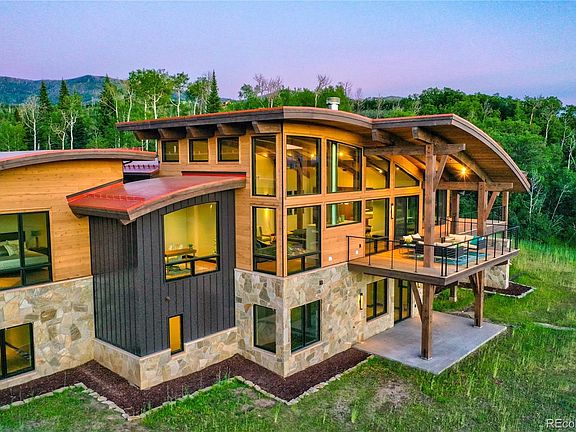 This stunning mountain-transitional styled home is located only 10 minutes from downtown Steamboat Springs and 5 minutes from the ski mountain. A secluded arrival through towering pines reveals a welcoming courtyard entry anchored by stone and timber that is capped by an artful combination of barrel and gable roof forms paying homage to the surrounding peaks of the Yampa Valley. Once inside, enjoy dramatic views wrapping the spacious great room and unparalleled sunsets from the covered deck off the chef's kitchen. An elegant master suite, study and a private guest suite complete the main level with 3 additional en-suite bedrooms, family room and patio on the lower walk-out level. The Owners' Lodge is your base camp for exploring the ranch's 900-acre open space preserve, private fly fishing on the Yampa River and exclusive access to the Alpine Mountain Summit Club at the base area of Steamboat ski resort. MORE INFO Alpine Mountain Ranch & Club is a 1,216-acre land preservation community development in Steamboat Springs, Colorado. The ranch features 63, five-acre homesites, 900 acres of open space, and a wildlife preserve- yet is located only 10 minutes to downtown Steamboat and 5 minutes to the ski area.