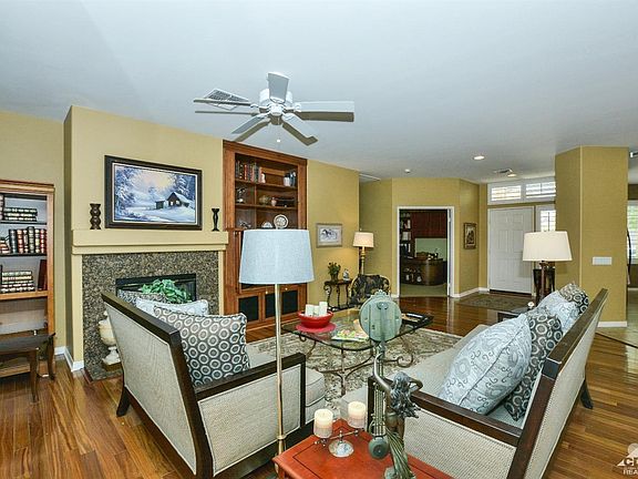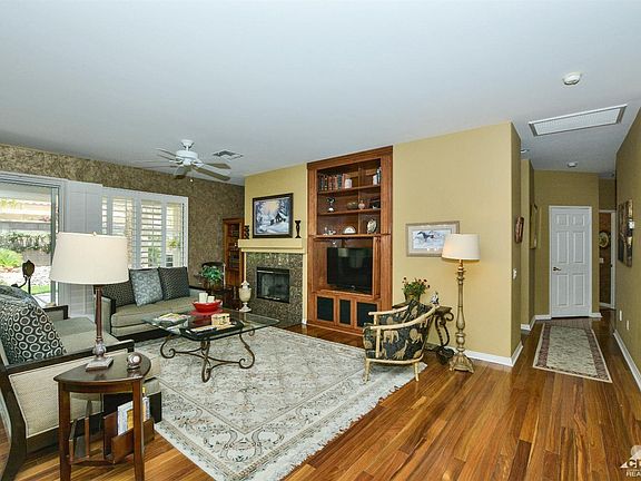 Exceptional & highly UPGRADED St. Croix like you've never seen before! Graced W/ rich Bellawood 3/4inch thick Brazilian teak wood floors throughout & diagonal tile in kitchen & baths. Fabulous great room w/custom built-in & granite framed fireplace. Elegant custom paint, wallpaper accents & plantation shutters throughout. Solar tubes that bring in natural light. Den w/built-ins, plush carpet and double doors. Guest bedroom with desert tone custom paint and upgraded bathroom nearby. Chef's kitchen w/granite counters, upgraded raised-panel cabinets w/pull-outs, double ovens, gas cook top, under cabinet lighting, breakfast nook. Master Bedroom w/bay window & french door to patio. Walk-in closet w/ built-ins. Inviting ample stamped-concrete patio w/ extended Alumawood cover. Beautifully designed landscape w/artificial turf, soaring palm trees and shrubbery. 3 CAR GARAGE! w/built-in cabinets, epoxy finish flooring. Indoor laundry w/sink and central vacuum! This beauty won't last!