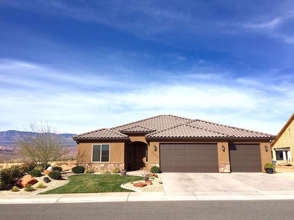 A spacious kitchen with Travertine floors, granite, and stainless steel appliances. Open living area makes this custom home a joy to live in! Walk-in pantry, beautiful, high ceilings-many extras! 4th bedroom has its own outdoor entrance. Home is located in Dixie Springs-the gateway to outdoor adventure, Sand Hallow Reservoir, sand dunes and golf course. RV parking. Buyer to verify all info.
