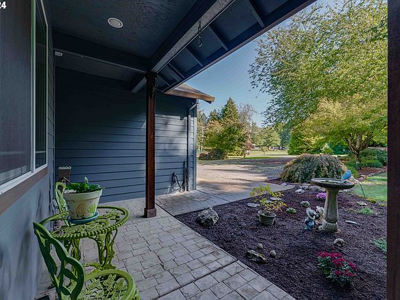 Discover the appeal of this custom-built, one-owner home, available on the market for the first time! Nestled at the end of a quiet street on a private flag lot, this warm and welcoming residence offers a perfect blend of comfort and functionality. As you enter, you will find the office to your left, looking out onto the covered front patio. The open-concept design seamlessly connects the spacious kitchen, dining area, and family room, making it an ideal space for gatherings. Step through french doors onto a generously sized pergola-covered patio that is perfect for outdoor entertaining. Convenience is key with a laundry room and a half bathroom located on the main floor just off the attached garage. Upstairs, the vaulted primary bedroom includes an ensuite bathroom and a walk-in closet. Two additional bedrooms share another full bathroom. The versatile vaulted bonus room also has ample storage spaces on both sides—great for organization or creative use. Set on a sprawling 1.50-acre parcel, the level yard feels like your own private park, complete with majestic trees that create a serene atmosphere. The expansive backyard is perfect for recreation and entertaining; the current owners have even hosted family weddings here! Additionally, a side parking area accommodates your outdoor toys, featuring a full RV hook-up with septic. An 11x15 shed offers extra storage space, along with another small outbuilding under the trees. The acreage offers plenty of room to add a workshop too. This property strikes the perfect balance between country living and convenience, with easy access to schools, shopping, and entertainment. Shown by appointment only-come see this exceptionally well cared for home and property!