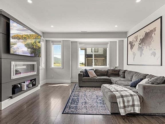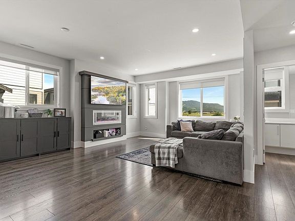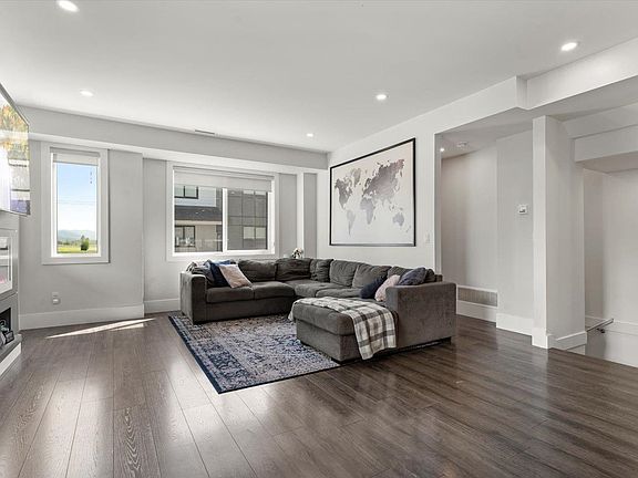 Welcome to Breeze Townhomes—an exceptional development featuring geothermal heating and cooling in every home. This well-maintained end unit offers bright, open concept living with large windows and modern finishes. The main floor includes a stylish kitchen with quartz counters, double wall oven, S/S appliances, large island with eating bar, accent lighting and two-tone cabinetry. Also, on the main, a spacious living room with a fireplace feature and deck access, plus a bathroom. Upstairs offers 3 bedrooms, including a primary with walk-in closet and ensuite. Downstairs features a 4th bedroom and full bath—perfect for teens. Includes double garage, some fresh paint, new washer/dryer, and quick freeway access.