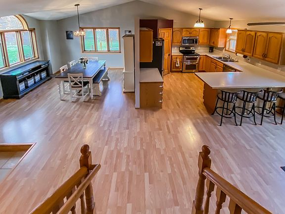 Amazing opportunity to live on the outskirts of town. The main level has hardwood floors. Large kitchen with a pantry and stainless steel appliances. Main floor laundry. The upper level has a master suite with a private bath and a walk-in closet. The walk-out basement includes a 12X21 family room. Fenced backyard. Mature trees, almost 2 acres.