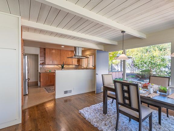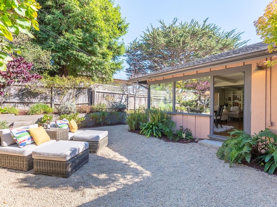 Welcome to this Mid-Century Inspired Residence with 2 Bedrooms, 2 Baths with Expansive Living Spaces, Wood Burning Fireplace and Over 1,500 Square Feet Perfect for Entertaining. Walls of Windows Let in the Great Natural Light and Provide Beautiful Views of the Gardens. Private Entry Gate Leads to Inviting Sun-Drenched Courtyard. Open and Inviting Floor Plan with Remodeled Kitchen Bathrooms and Beautiful Hardwood Floors Throughout. Primary Suite Offers Built-in Corner Desk with Garden Views and 3 Closets. Guest Bedroom/Office with Built-in Bookcases and Mirrored Dual Closets. Wonderful Oversized Artist's Studio with Vaulted Beamed Ceilings and Laundry Room. Enjoy the Easy Access to Downtown Carmel and the Beach.
