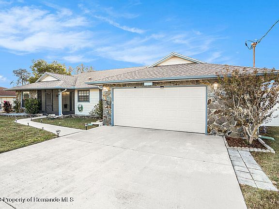 Welcome to this beautiful, freshly painted home with three bedrooms and three full baths in the city of Spring Hill. Enter to the bright new kitchen with quartz counter tops, stainless steel sink, tile backsplash, stainless steel chimney style range hood, Tru-wood shaker style cabinets, ceiling fan with light and remote, recessed ceiling lights, engineered vinyl plank floors all redone in 2021. Combined with a large living/dining area with vaulted ceiling makes a great spot for entertaining. Primary bedroom suite has 2 huge cedar walk-in closets and a newly updated bathroom with two vanities, large shower and linen/storage area. Extensive storage with 2 -3 closets in second and third bedrooms. Many new updates throughout the home include Hurricane rated garage door, keypad and two remote garage openers in 2020, Travertine flooring in Florida Room in 2020, duct work, APCO whole house air purifier, vinyl privacy fence and two vinyl gates in 2020, pool filter in 2020, pool resurface with Diamond Brite and new decorative tile in 2021, front aluminum screen door with security lock in 2021 and 40-gallon water tank in 2021. The list goes on and on! Extra large driveway for 4 cars and extended 2-car garage with builtin workbench/workshop. Huge bonus room measuring 36' x 12' under heat/AC with wet bar, refrigerator and a full bathroom. Two storage sheds: wood measuring 8' x 9'; vinyl measuring 6' x 4'. Cub cadet ride-on lawn mower (3 years old) remaining. Sit by your sparkling pool and enjoy the privacy of the fulled fenced in back yard, just another great spot for entertaining your guests. Extra large deck measuring 23' x 16' and all pool accessories and chemical maintenance supplies remain. Home is conveniently located only 1/2 mile from supermarket/shopping/medical offices. Hurry this home won't last long!