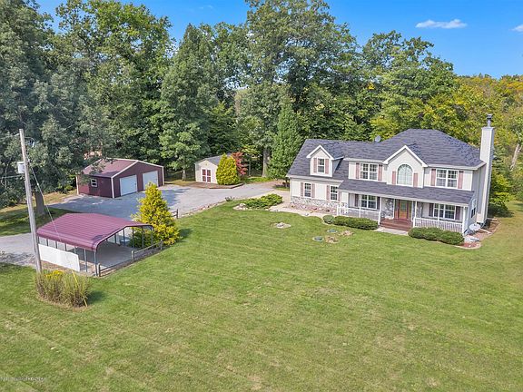 Beautiful two story home situated on a private 4 acre lot right on the Grand River! This home features over 2700 square feet of finished space, 3 bedrooms, 3.5 baths, attached garage, pole barn and cabin-like shed overlooking the river! The main floor features an open floor plan kitchen and living space and separate dining room or office space. Upstairs you will find 3 bedrooms, including a master suite with walk in closet and private deck overlooking the river. In addition, a bonus room with 2nd story laundry, hot tub, sauna and large deck! The lower level features a large living space, full bath and kitchen. Outside don't miss the amazing deck on the water and cabin style shed to make you feel like you are away on vacation up north! Outdoor shed has a wood stove and electric.