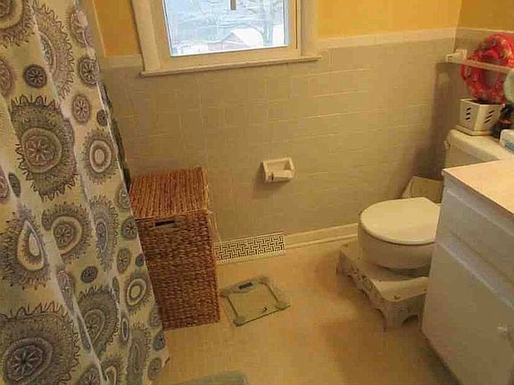 All 3 bedrooms are on the upper level of the home as well as a bathroom. Living room and eat-in kitchen are on the main level. The finished basement is carpeted and has french doors that lead to the huge backyard. A bathroom and the laundry room are both in the basement. There are plenty of closets all over the house. There is a 12x12 deck off the kitchen and a porch on the front.