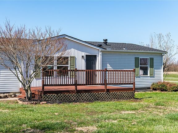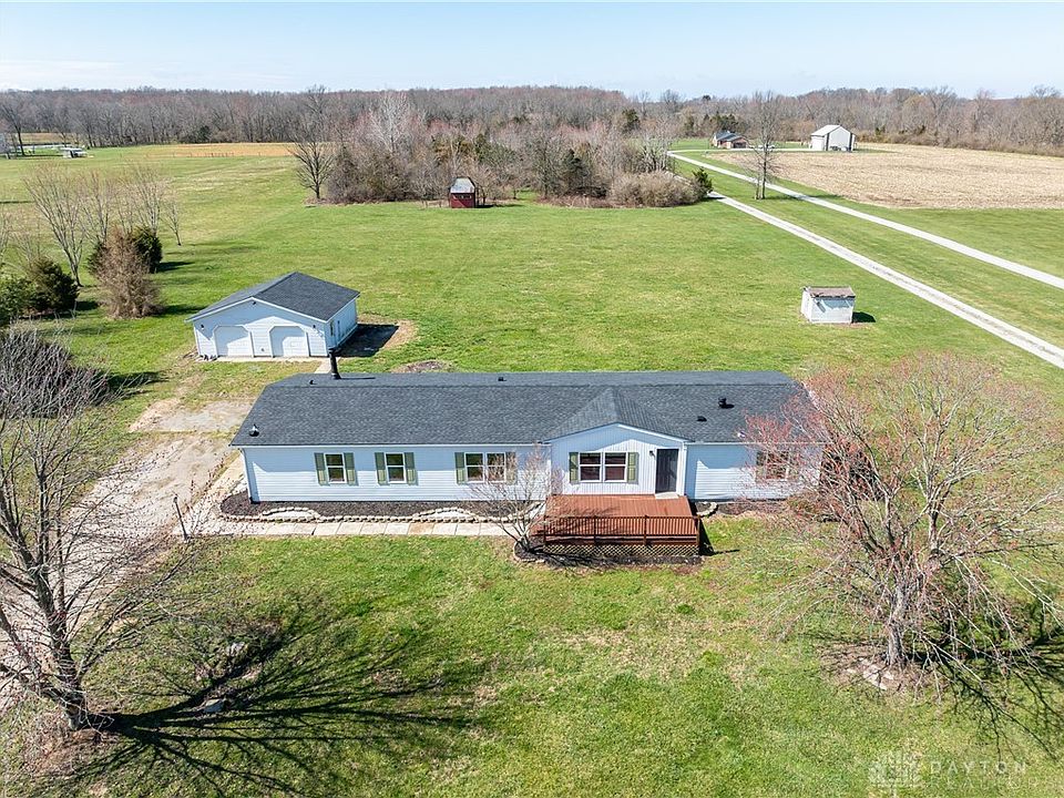 Spectacular 5 acre setting nestled around 2052 sq. ft. ranch in like new condition. 4 bedrooms including master suite, 2 full baths, great room with fireplace, living room, dining room, updated kitchen & baths, & a detached 2 car garage! Relax on front porch or on rear deck and enjoy this private tract that sits back from the road with woods providing privacy from rear neighbors. Lots of updates all completed in 2025, including a new roof! Manufactured home.