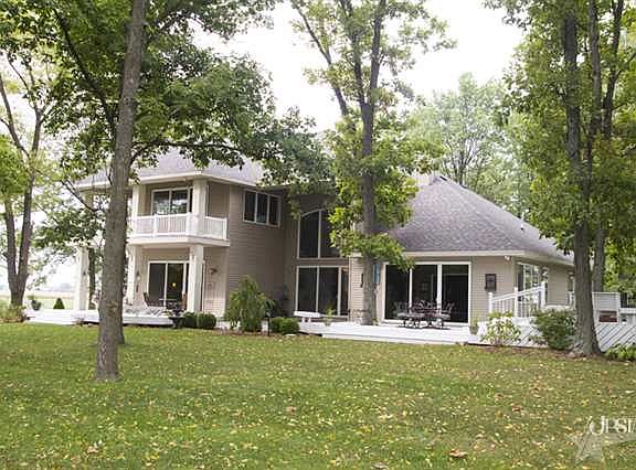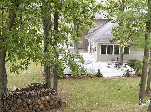 Spectacular Country Living Retreat in Custom Designed Home. 1 acre Stocked Pond w/Beach, Pier & Fountain. 2000 sq ft Wrap Around Deck w/Built-In Hot Tub & View of Woods. Quality Built House enters to High Ceilings; Tiled Foyer, Dining Room & Living Room w/Fireplace. Beautiful Custom Kitchen w/Hickory Cherry Stained Cabinets & Tile Floor opens to Family Room w/Fireplace & Hardwood Floors. Main Floor Master Suite w/Tray Ceiling, 2 Lge Walk-In Closets and Private Entrance to Sunroom w/Tile Floor & Fireplace; Master Bath w/Jacuzzi, Lge Custom Shower.Main Floor Bedroom w/Floor to Ceiling Book Shelves.Beautiful Custom Oak & Wrought Iron Staircase leads to Loft w/Wet Bar & Cabinets; 2 Upper Large Bedrooms w/Walk-In Closets & Jack & Jill Bath. Lower Level is Plumbed & Framed for 1/2 Bath & Wired for Sound System. Lge 3 Bay Garage w/ 11 ft Ceiling & Finished Concrete Floor. Central Vac and Stereo Sound System in all Rooms. Pole Barn w/Work Bench & Plumbed for Gas. Property is 2 parcels of Land